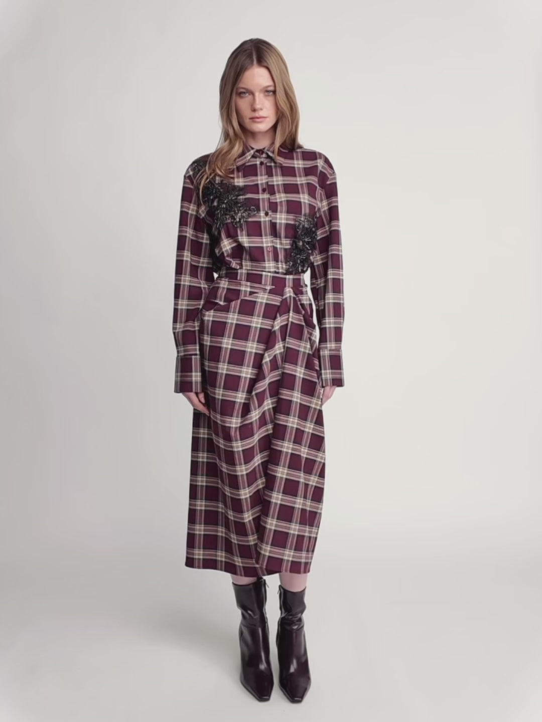 Chemise à carreaux ornéeS / BORDEAUX/BEIGE Prix de vente$325.00
