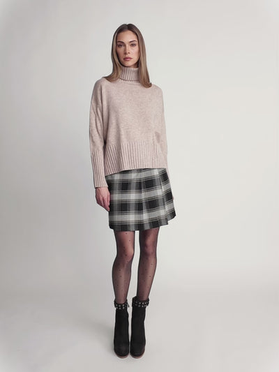 Pull col roulé en laine côtelée