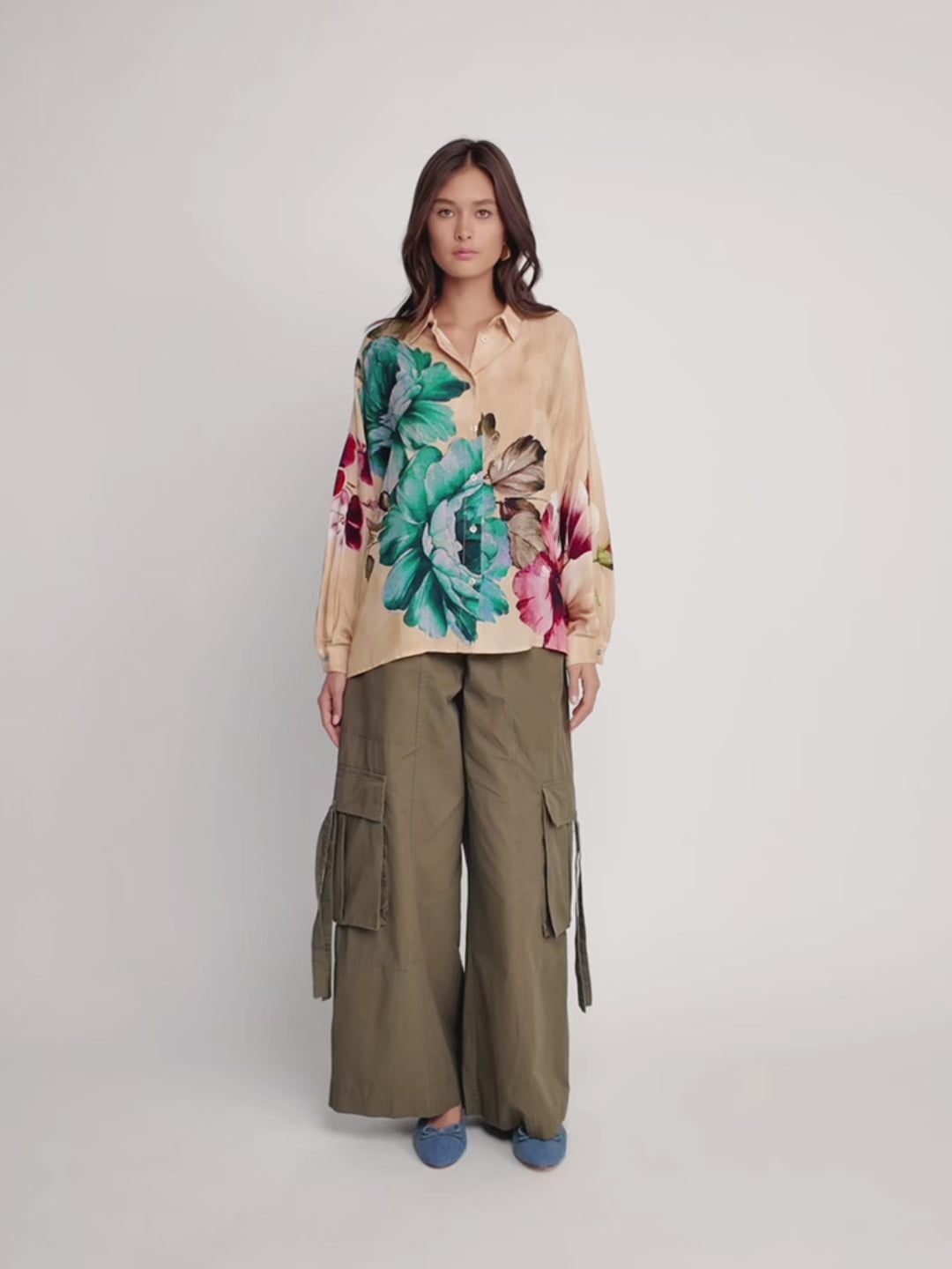 À la fois décontracté et structuré, ce pantalon cargo large apporte une touche utilitaire moderne à votre tenue quotidienne. Doté de poches latérales oversize et de cordons de serrage réglables, il allie fonctionnalité et style. Sa taille haute et sa silhouette fluide le rendent facile à associer avec des hauts élégants et des pulls décontractés pour une tenue polyvalente.