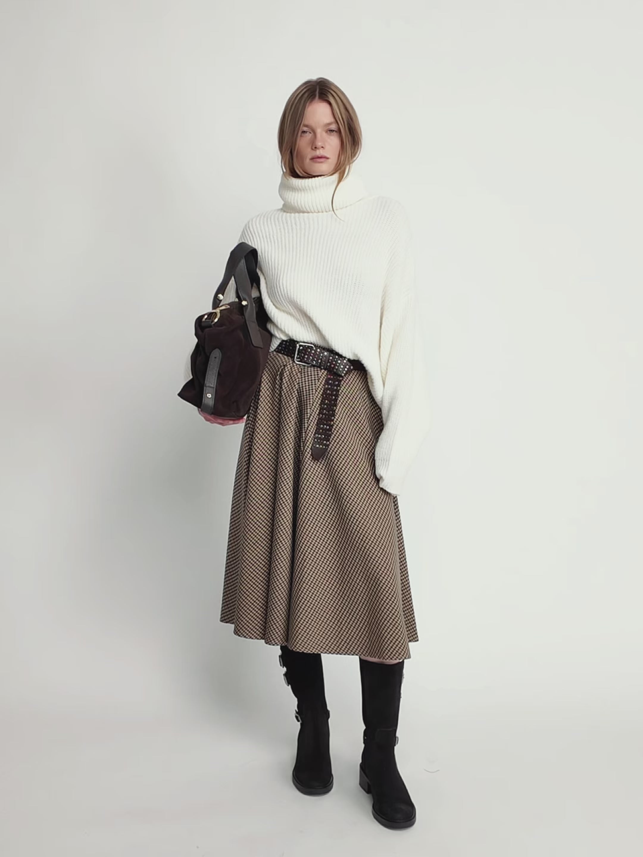A timeless cold-weather essential. This chunky ribbed knit sweater features a voluminous turtleneck and a relaxed silhouette for effortless comfort and warmth. Crafted in a soft beige tone, it embodies understated elegance — perfect for pairing with tailored trousers, denim, or flowing skirts for a cozy yet polished look.