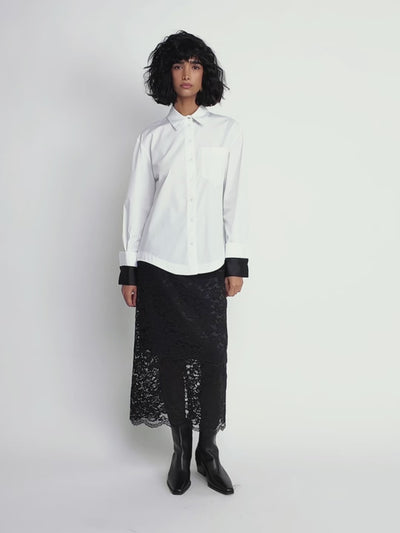 A wardrobe essential reimagined for modern dressing. This crisp white button-up shirt features a structured collar, chest pocket, and relaxed fit for effortless sophistication. Perfect for layering under blazers or pairing with denim for a polished yet casual look.