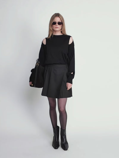 Cut-Out Shoulder Knit SweaterO/S / BLACK