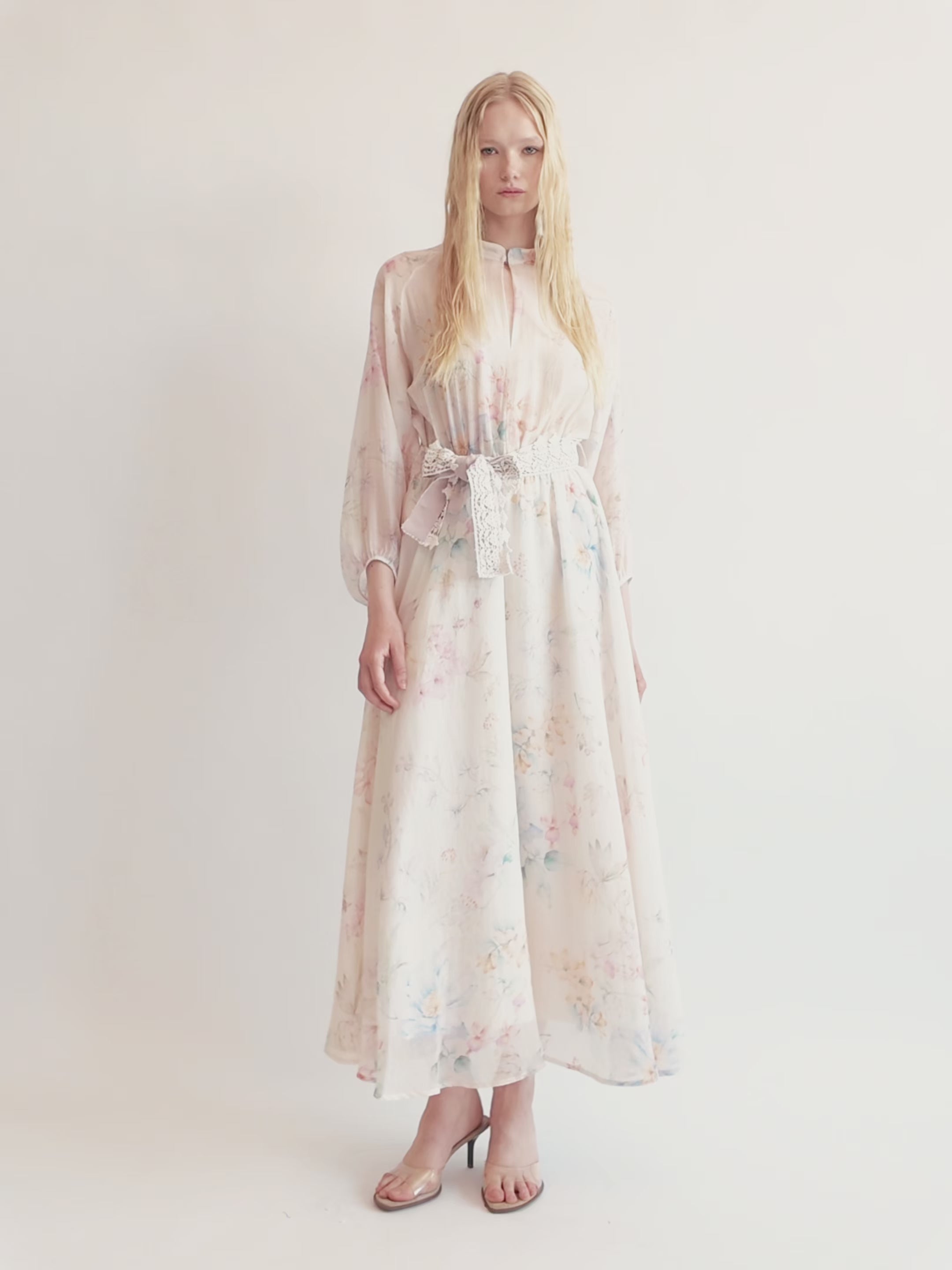 Wrap yourself in a poetic aura with this long dress. Its long sleeves and flowing design offer comfort and grace, while the floral pattern adds a touch of freshness. Perfect for days when you want to feel in harmony with nature, maintaining a sophisticated style suitable for everyday occasions.