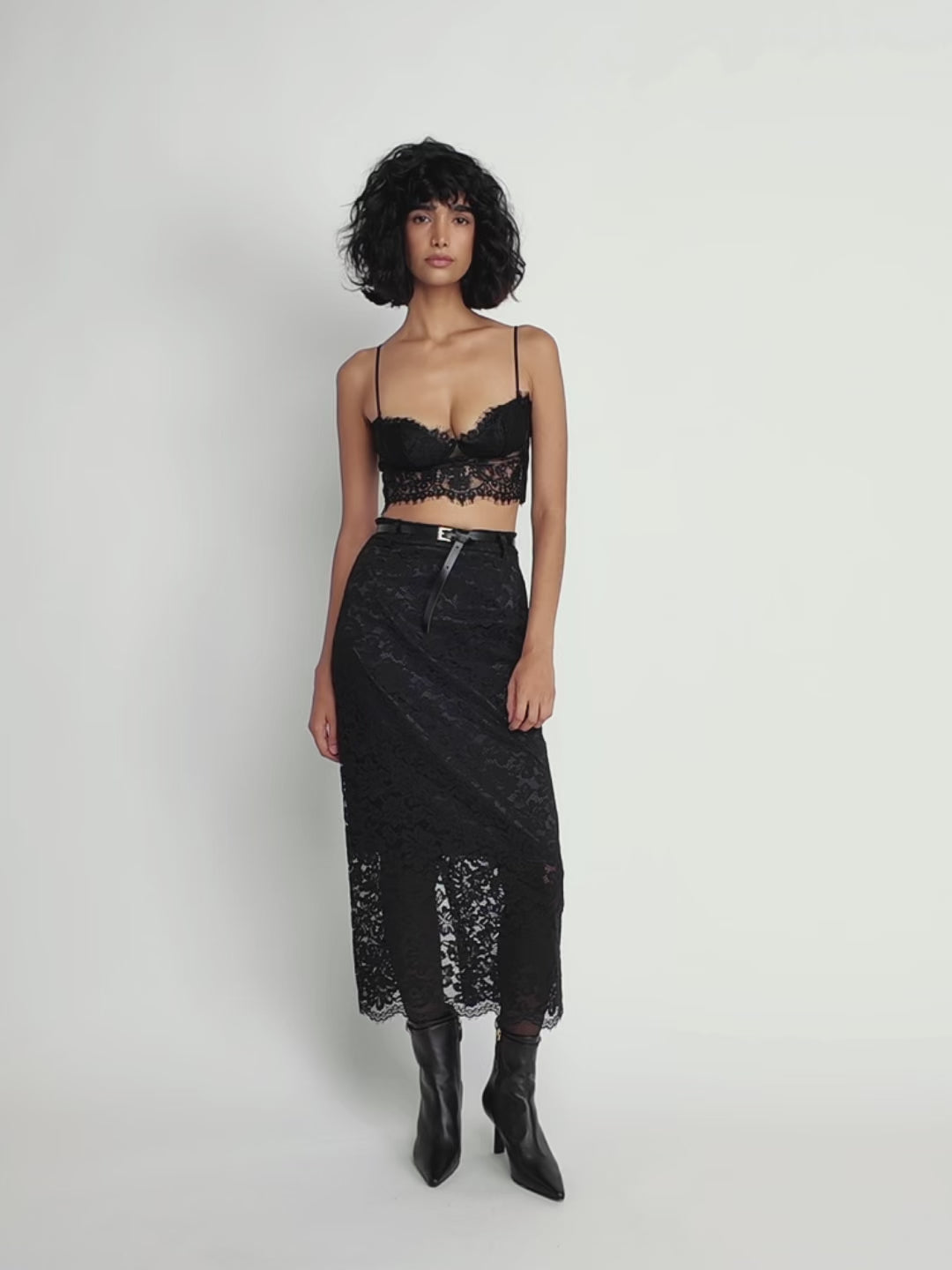 Lace Bustier Crop TopS / BLACK