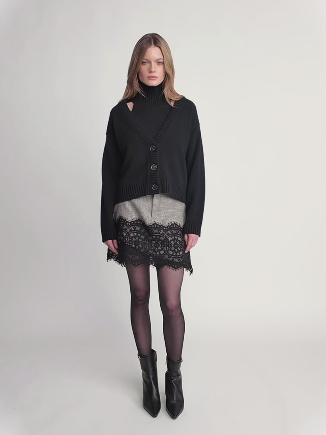 A refined two-piece knit ensemble designed for effortless layering and timeless versatility. The set includes a soft, sleeveless mock-neck top paired with a relaxed V-neck cardigan featuring textured rib trims and statement buttons. Wear them together for a coordinated, cozy look or style each piece separately to elevate your everyday dressing. A chic, multifunctional knit duo perfect for transitioning through the seasons.