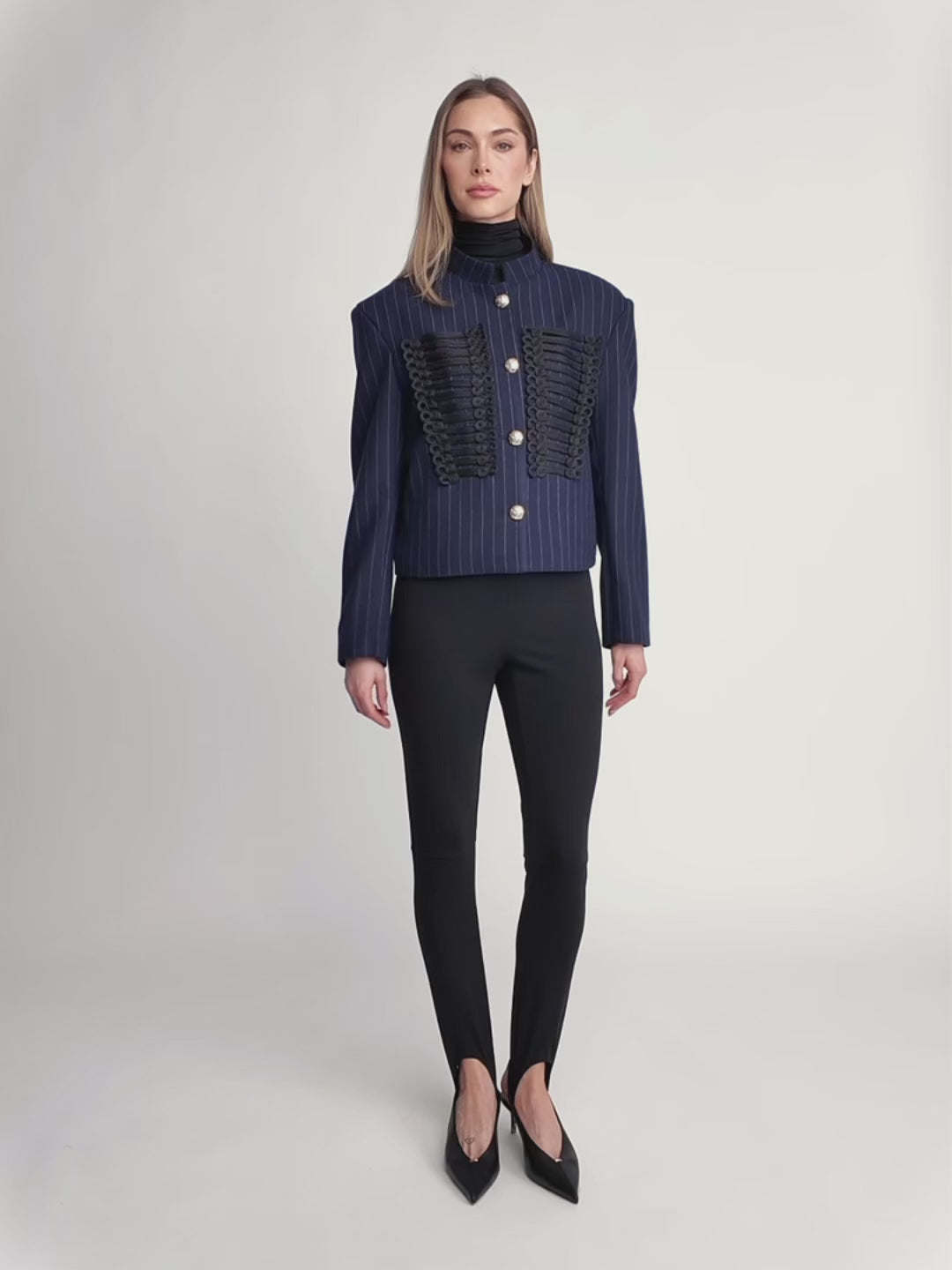 A structured jacket designed to elevate any look with effortless polish. Featuring a tailored silhouette, statement front detailing, and a clean button-down closure, this piece blends timeless structure with modern edge. Perfect for styling over trousers, skirts, or dresses for day-to-night wear.