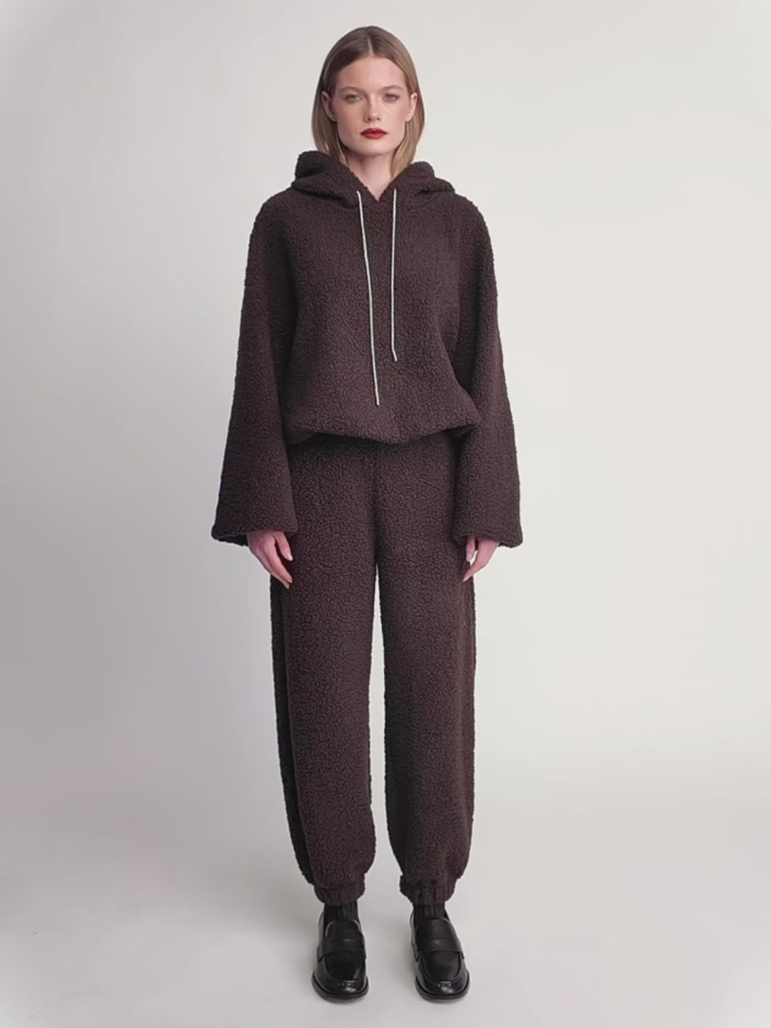 Designed for comfort without compromising style, these teddy jogger pants feature a soft textured finish, elastic waistband, and tapered ankle cuffs for a relaxed yet polished silhouette. Warm, lightweight, and ultra-cozy, they’re perfect for effortless everyday wear—whether styled casually or elevated with structured layers.
