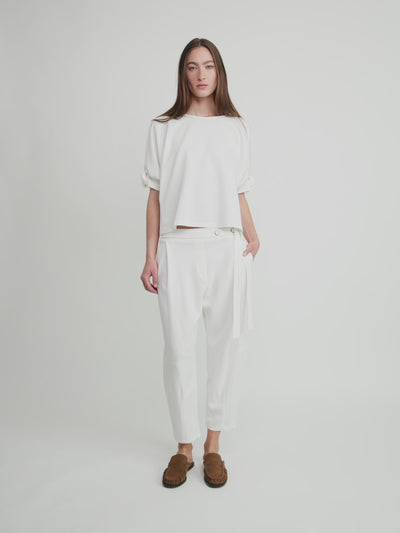 Wide-fitting top featuring short sleeves gathered into sculptural draped details, offering a refined silhouette that enables effortless styling versatility. Ideal for daily wear, this piece complements a variety of contemporary looks, supporting distinctive and personal combinations for demanding wardrobes.