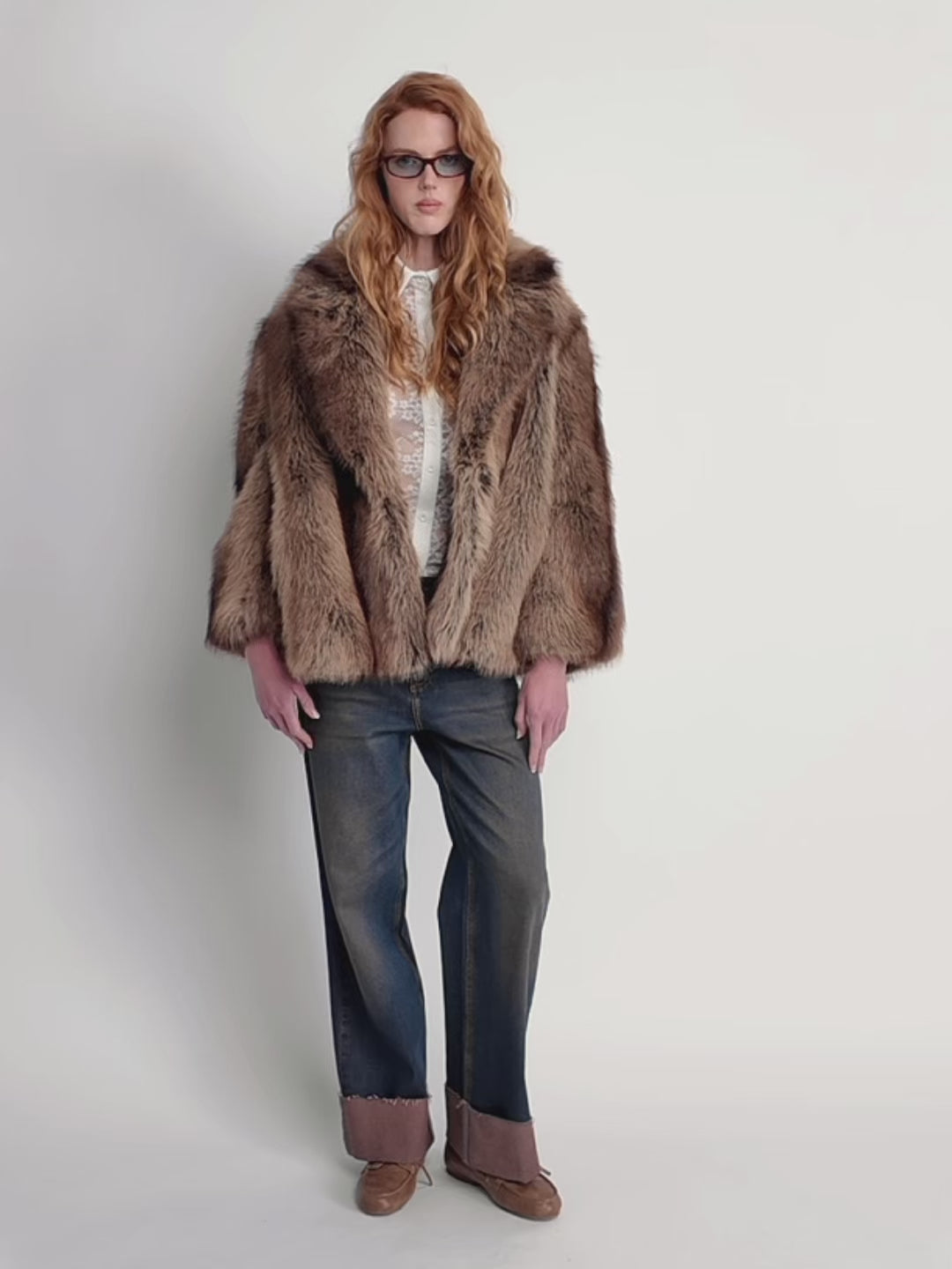Luxurious and timeless, this brown faux fur coat adds instant sophistication to any outfit. Featuring a plush texture and relaxed silhouette, it’s designed with a notched lapel and open front for effortless layering. The perfect statement piece to keep you warm while elevating both day and evening looks.